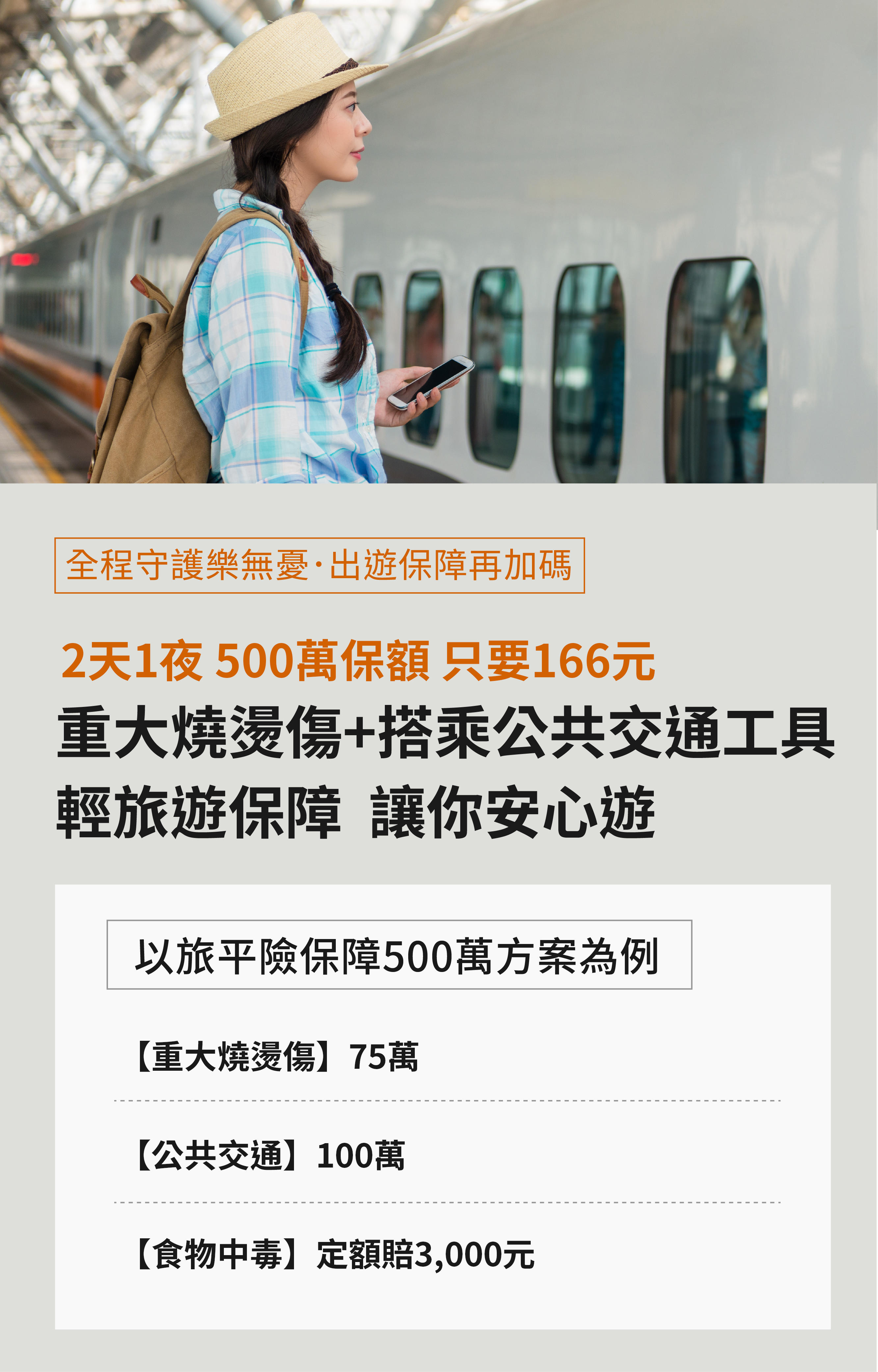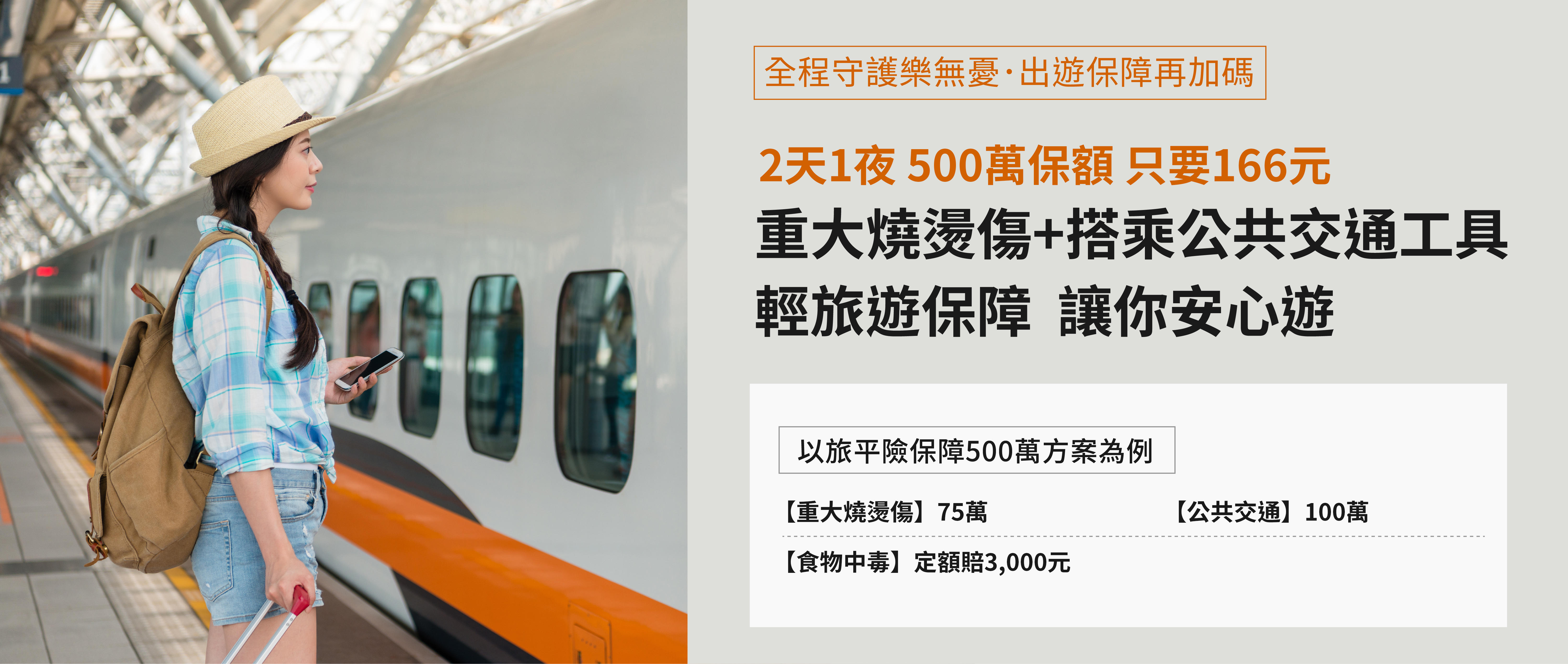 一般參加國內旅遊團或自行搭乘公共交通工具旅遊,業者會為旅客/乘客投保責任保險,保障僅有基本的身故及失能200萬、傷害醫療10萬。不論天數長短、地點為何,建議可以依照需求購買合適的旅平險,若遇重大意外事故時,可轉嫁風險。