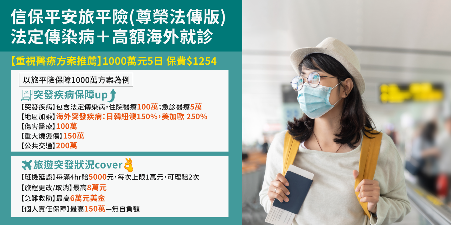 18足歲~65歲:旅平險保額最高1200萬